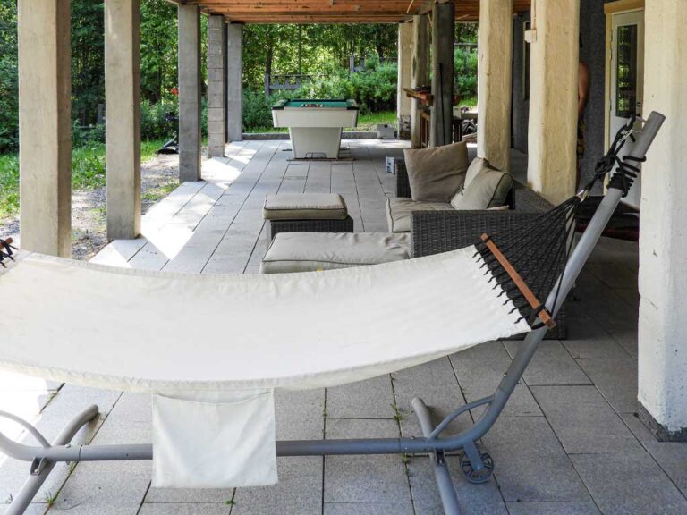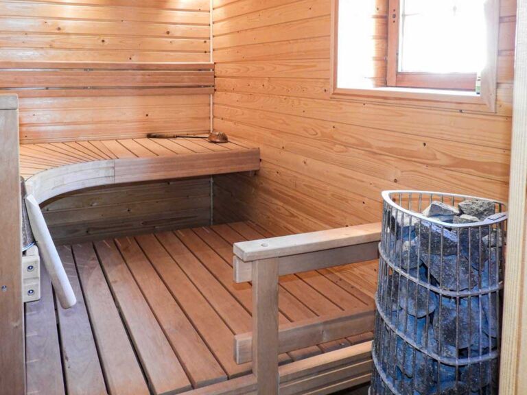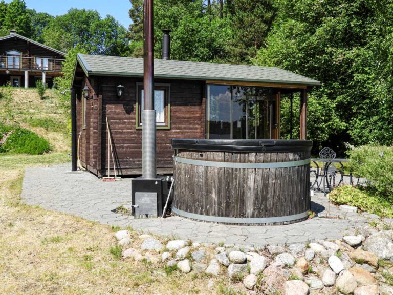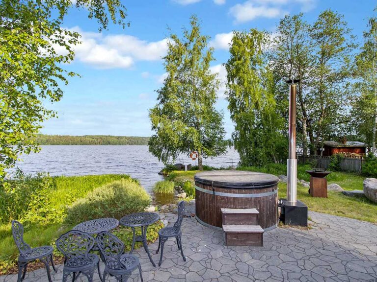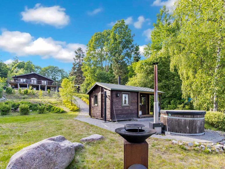 On the plot, there is a lakeside sauna with a separate sauna room and a glazed porch. The sauna is right on the beach and can be easily accessed from the lot to enjoy the peace and quiet of nature or to cool off in the lake. Close to the sauna is a modern outdoor swimming pool overlooking the lake.